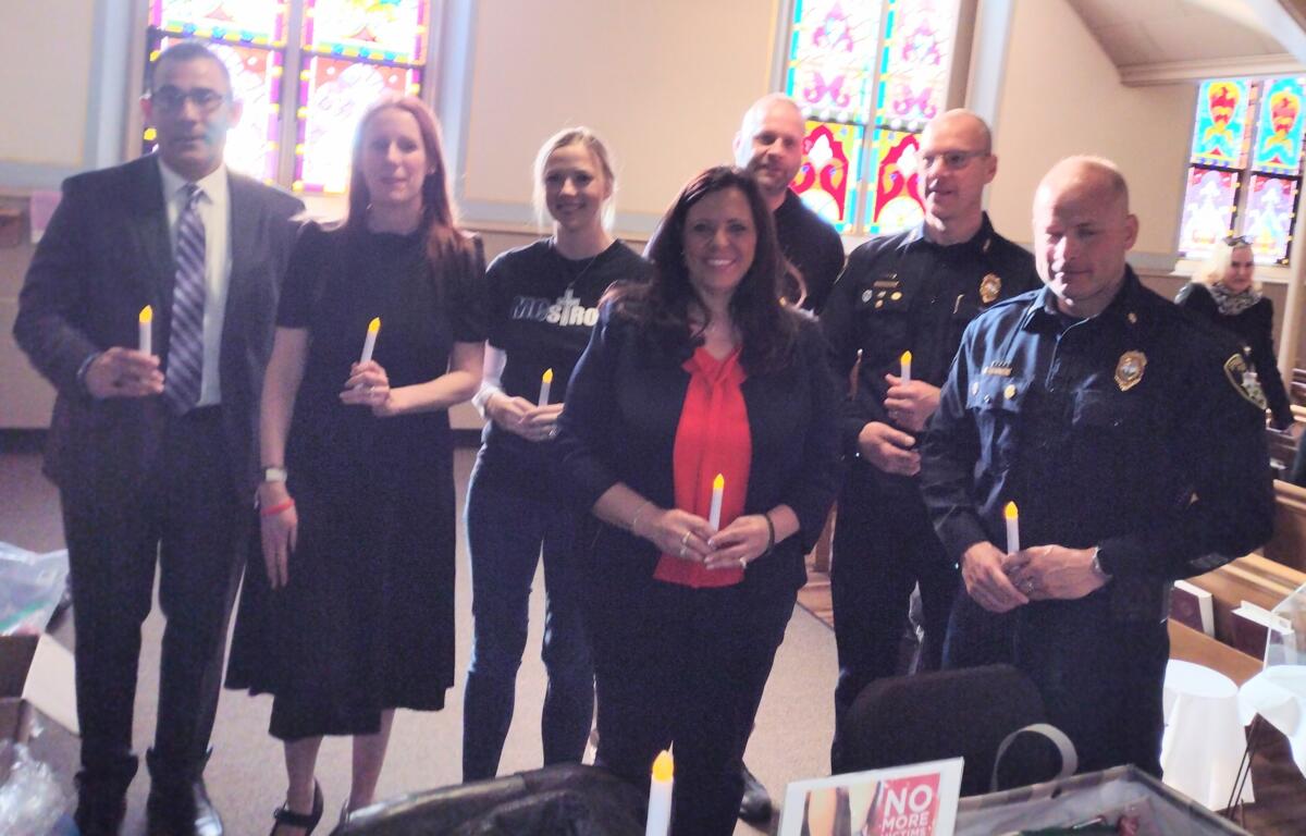 Mothers Against Drunk Driving hosted a Candlelight Ceremony for the victims of impaired driving crashes on Thursday evening at Trinity Lutheran Church in downtown Springfield. The program included remarks from Springfield Mayor Misty Buscher (4th from left) and Juan Huerta (far left), Deputy Director of Public Engagement from Secretary of State’s office.