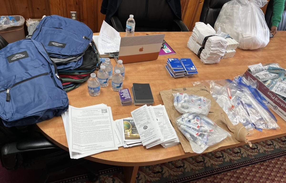The coalition’s goal is to distribute eighty backpacks to those who are freed from jail awaiting trial.