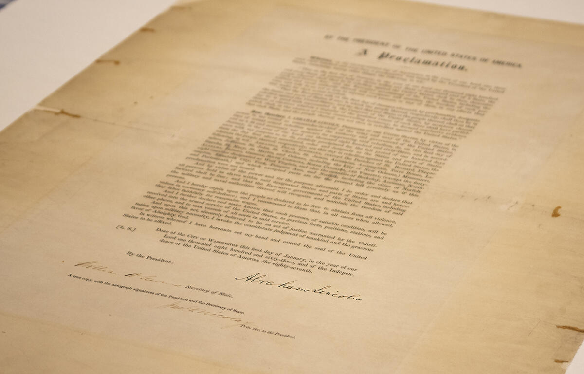 In order to protect the document from light, a rare copy of the Emancipation Proclamation only comes out on special occasions for viewing. Juneteenth is one of those occasions, says Chris Wills with the Abraham Lincoln Presidential Library and Museum.  Wills says Juneteenth is all about the end of slavery and the nation turning away from that terrible chapter in the past, and the Emancipation Proclamation was central to that happening.  He adds that it is wonderful that Illinois has a signed copy of the proclamation and is able to share it with the public.
