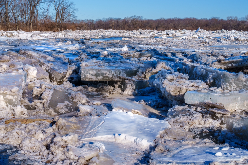 Officials said about 12 miles (19 kilometers) of ice jammed up the river and as it melts, it not only is causing flooding along the river, but remaining chunks of ice could damage buildings and other structures as they float downstream.