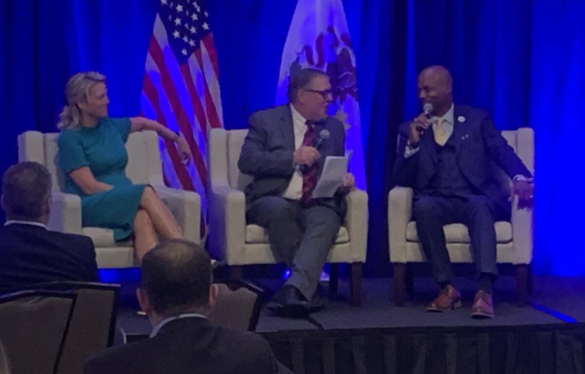 Senators on stage at the conference summed up the state’s political climate as the legislative session enters its last three weeks.