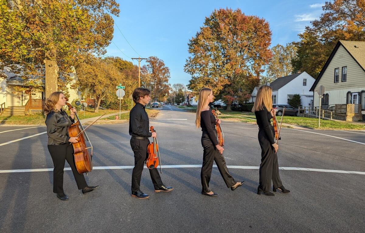 The string quartet: Springfield High School students Finn Powell and Madelyn Beck, Glenwood High’s Madeline Bollman and Havana High student Clare Specketer will join the band for the songs “Eleanor Rigby,” “A Day in the Life,” “Hello Goodbye,” and “Hey Jude.”