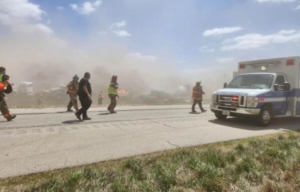 Reports indicate there was a crash in the northbound lanes, and at the same time there were numerous crashes on southbound I-55 at Milepost 76. Two semi-tractor trailers caught fire as a result.