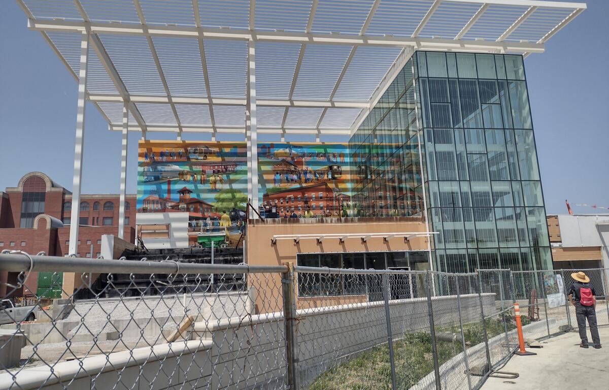 An over 60 by 20 foot mural depicting many vintage buses and trains as well as many significant buildings and people in the history of Sangamon County was unveiled Tuesday morning at a ceremony across from the under-construction Springfield-Sangamon County Transportation Hub.
