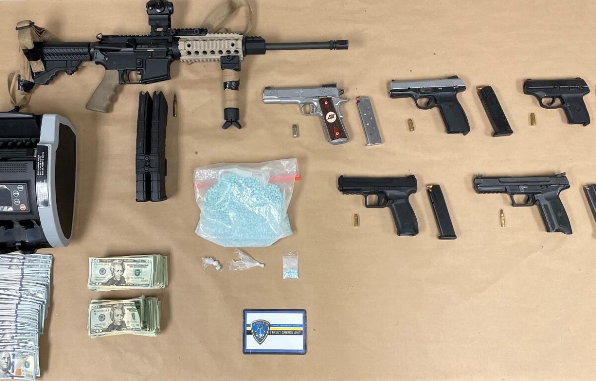 The officers conducted a search of the residence where they located 6 firearms that included a DPMS AR15style rifle, Ruger ECPS 9mm pistol, Kimber Team Match II 45 caliber pistol, Ruger SR40 40 caliber pistol, Ruger57 handgun, Canik TP95A 9mm handgun, 562.25 grams of Oxycodone, and $9,040. Three of the recovered firearms had been reported stolen from Springfield, Urbana, and East Moline, Illinois. Upon conclusion of the investigation, Devosia was transported to the Sangamon County Jail where he awaits formal charges from the