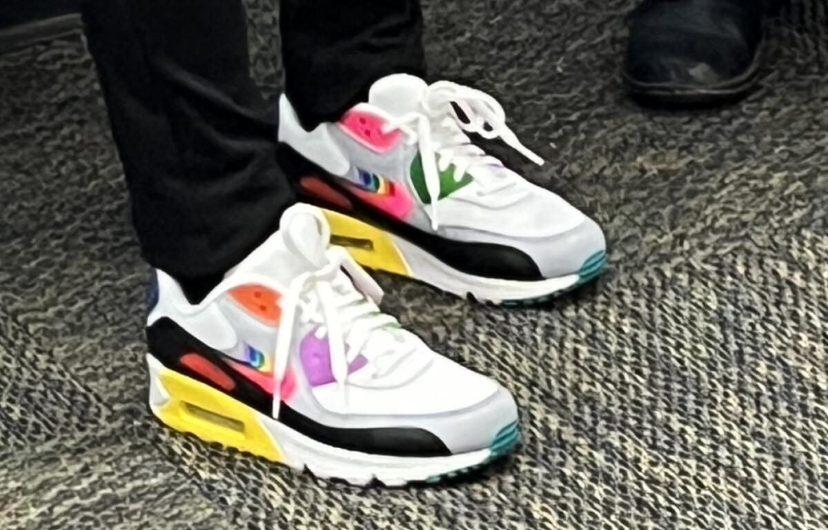 Not boogie shoes – but pride shoes – adorn Comptroller Susana Mendoza’s feet as she prepares to march in the Pride Parade in Chicago Sunday.