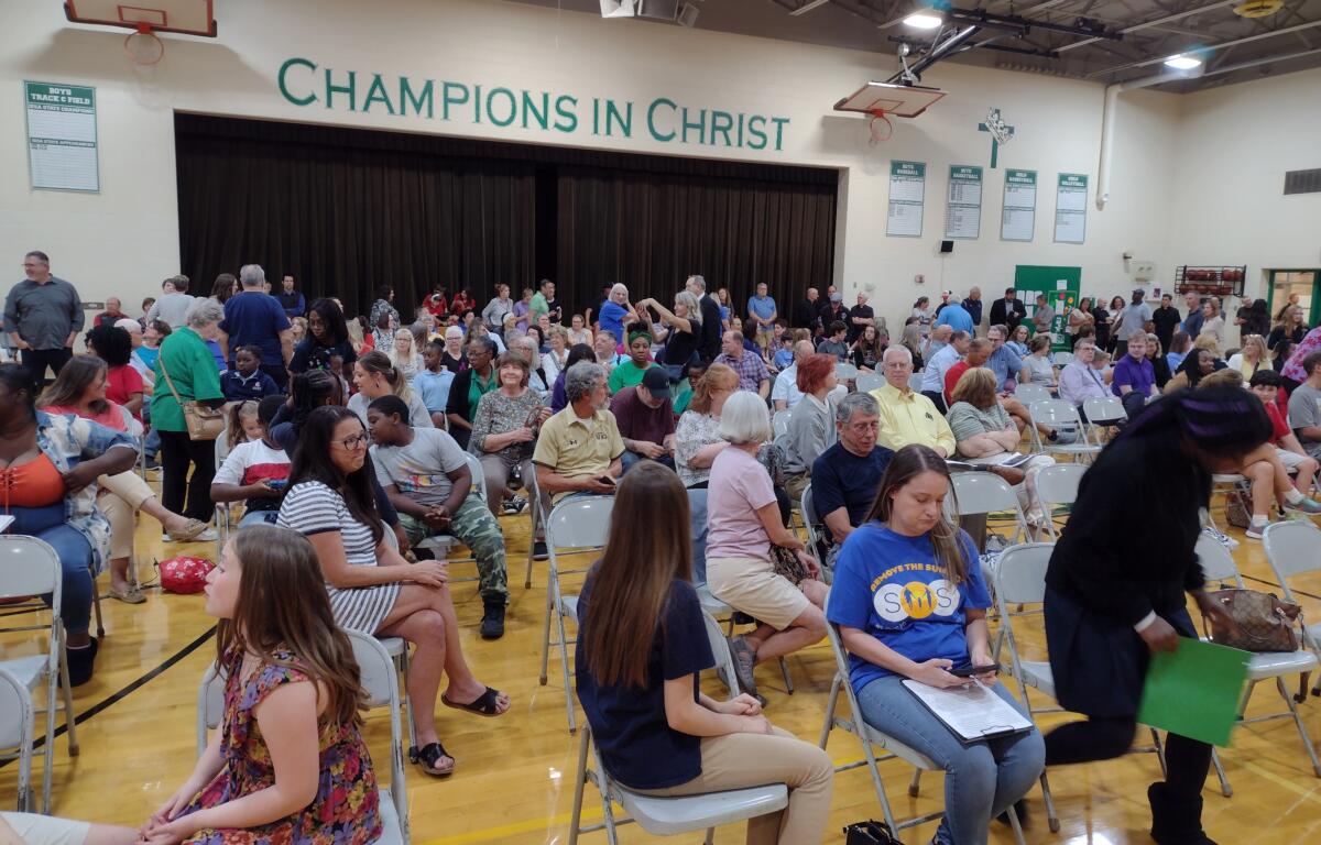 It happened Monday night at Christ the King Grade School on the city’s West Side. About 300 people filled the gymnasium to standing room only. They were there to hear from about a half dozen students and their families speaking about the importance the state sponsored scholarships mean to their education dreams and the devastating effect losing the scholarships would have on them and their loved ones.