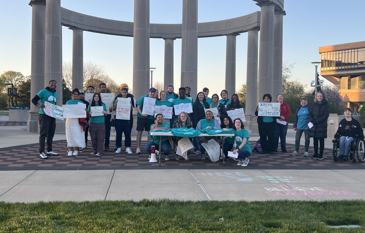 Students marched throughout The University of Illinois Springfield Campus Friday evening as part of Take Back the Night, an event put on by UIS’s Women’s Center, to raise awareness about sexual violence and to give students an opportunity to express themselves as survivors and allies. An indoor rally held after the march, featured an open mic event where students, faculty and staff in attendance shared stories, poetry and messages of solidarity.