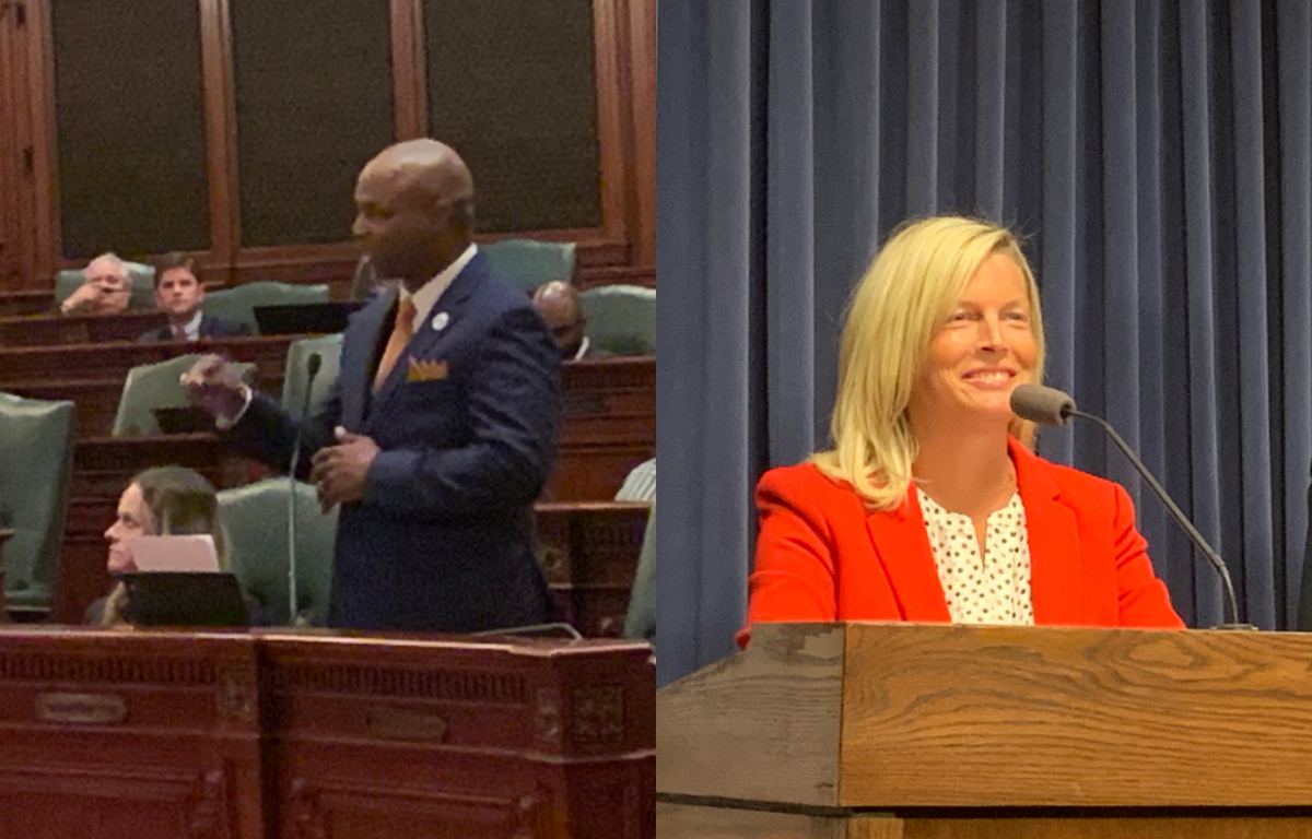 “Regardless of our weekly meetings, Speaker Welch, you gave a false hope for a new day,” said House Minority Leader Tony McCombie (pictured, right) (R-Savanna), invoking a phrase Speaker Chris Welch (pictured, left) (D-Hillside) used when he took the gavel two years ago. “The House Republicans were denied participation in many things, but, most importantly, this year’s budget process.”