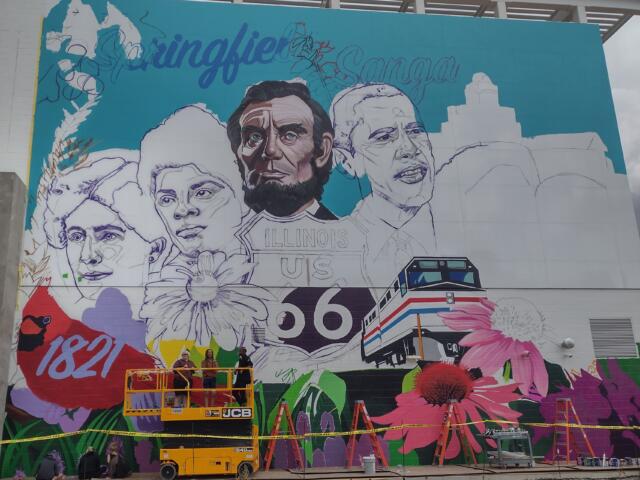 The mural is 61 feet wide by 47 feet tall and is located on the 10th Street corridor just north of the Sangamon County building.