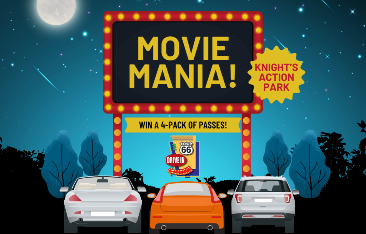 Route 66 Twin Drive-In Carload Passes with MOVIE MANIA! We’ll hand out a 4-pack of Drive-in tickets every week. Winners will be drawn on Fridays.